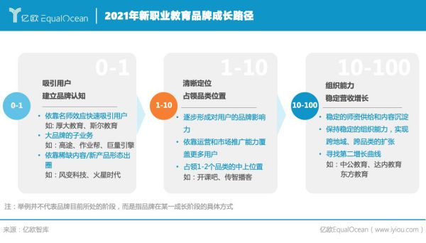 第二,新职业教育的创新和发展最终还是企业组织能力的比拼。新职业教育品牌都会经过建立品牌认知、占领品类未知和稳定营收增长凸显组织能力三个阶段。