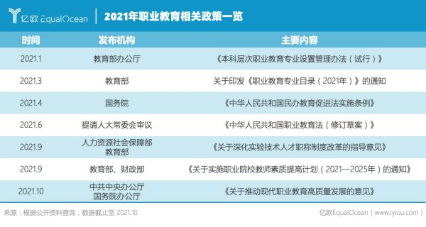 2021年职业教育政策频发,这既是职业教育改革的进一步推进,亦是新的社会经济环境使然。