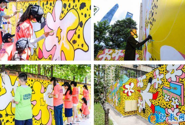 7月的上海浦东,立邦「为爱上色」艺术+艺术家FELIX_勺子为东昌路街区设计了一幅百米墙绘,用花朵与飞鸟表达自由美好,用明媚色彩点缀城市空间。「为爱上色」还组织了社区居民与中小学生参与共同创作,你一笔我一画,一幅色彩明丽、生机勃勃的画卷在众人的努力下渐渐完善,成为了集体创造的艺术品。