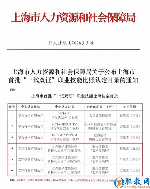 1月8日,上海市人力资源和社会保障局发布《关于公布上海市首批“一试双证”职业技能比照认定目录的通知》。立邦成为上海市首批“一试双证”职业技能认定企业,正式获得在上海市范围内对“装饰装修工(艺术涂装师)”职业开展初级、中级、高级职业技能比照认定的资格。这标志着立邦推行的企业人才标准实现与上海市职业标准互通互认,被纳入上海市公共技能人才评价体系。