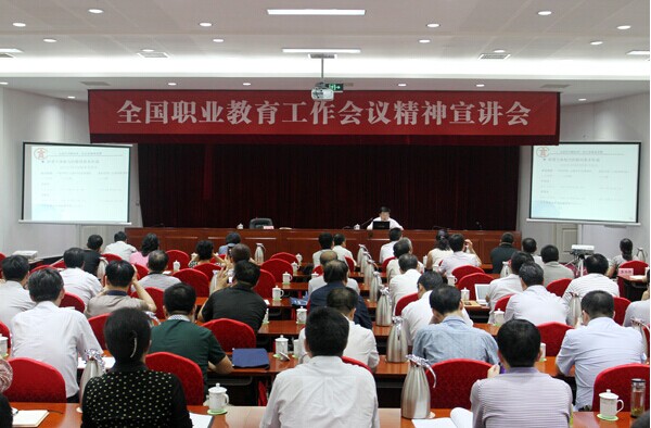 落实好全国职教会精神,为加快发展现代职业教育做出新贡献》为题对学习贯彻全国职业教育工作会议精神和《国务院关于加快发展现代职业教育的决定》、《现代职业教育体系建设规划(2014-2020》及中央领导重要讲话、会议背景、意义和如何贯彻作了深入解读。宣讲对如何加快我国职业教育发展步伐,构建符合我国实际的现代职业教育体系作了前瞻性和系统性研究分析,理论性、思想性、操作性强,对发展职业教育,构建现代职业教育体系具重要指导意义。