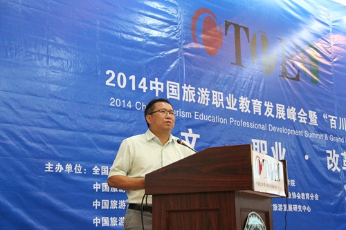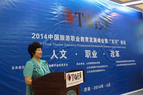 近日,2014年中国旅游职业教育发展峰会暨“百川论坛”(以下简称“峰会”)在山东旅游职业学院隆重召开。来自全国各地旅游院校、知名旅游企业的代表百余人汇聚山旅,共襄盛举。在上午的峰会开幕式上,学院院长宋德利致欢迎词,全国旅游职业教育教学指导委员会(以下简称“行指委”)秘书长韩玉灵代表行指委致辞祝贺,学院副院长魏凯主持了开幕式。简洁高效的开幕式后,在南京旅游职业学院院长周春林的主持下,与会的旅游教育界、企业界的学者、专家立即投入了热烈的学术研讨之中。
