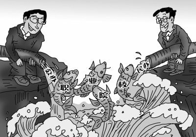 虽然职业院校引入“混合所有制”可以带来种种发展“红利”,但由于政策不明晰,操作边界不清楚,许多院校长怕触碰到红线,还处于观望之中。一些院校长坦陈,现在只敢在二级学院的层面上进行“试水”,对于整个学校层面的“混合所有制”,还不知如何入手。即便是二级学院,也有一些学校由于操作不当,惹来麻烦,被有关部门调查。