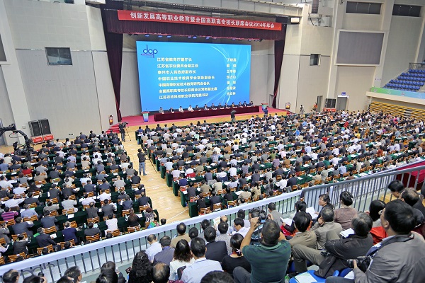2014年10月18日至19日,“创新发展高等职业教育暨全国高职高专校长联席会议2014年年会”在江苏泰州召开。教育部职业教育与成人教育司司长葛道凯、教育部发展规划司副司长陈锋、农业部科技教育司司长唐珂、江苏省教育厅副厅长丁晓昌、泰州市委书记蓝绍敏等领导出席会议。这是一次高等职业教育战线全面贯彻落实全国职业教育工作会议精神和《国务院关于加快发展现代职业教育的决定》的重要会议。会议以“贯彻落实职教会议精神·创新发展高等职业教育”为主题,充分展现了高等职业教育下接地气、直接服务区域发展的实际成效,展示了高等职业教育在强化内涵建设、提升社会服务能力等方面的活力。