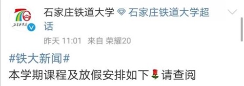 燕山大学官方微博发布关于国庆节、中秋节放假及变更作息时间的通知↓↓↓