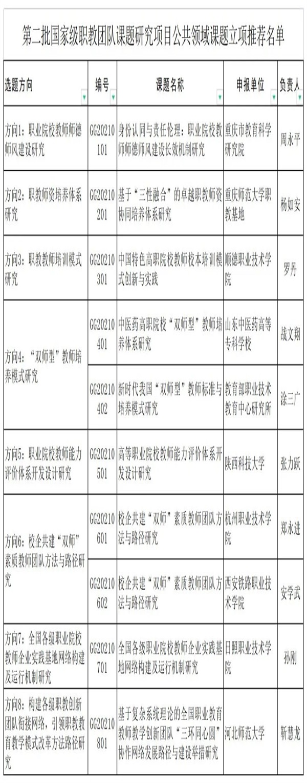 2.第二批国家级职教团队课题研究项目公共领域课题立项推荐名单