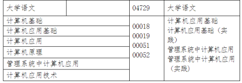 (三)“前置学历”《学籍表》中课程与可免考的自学考试现行专业计划中的课程对照表: