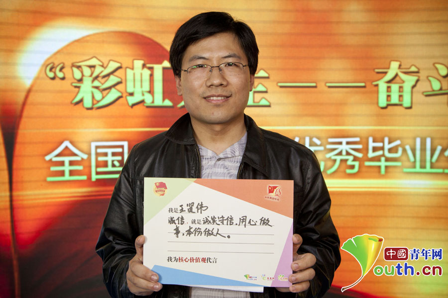 “彩虹人生——奋斗的青春最美丽”分享团成员,武汉翰铁科技有限公司总经理王贤伟写下自己的“价值观体”。