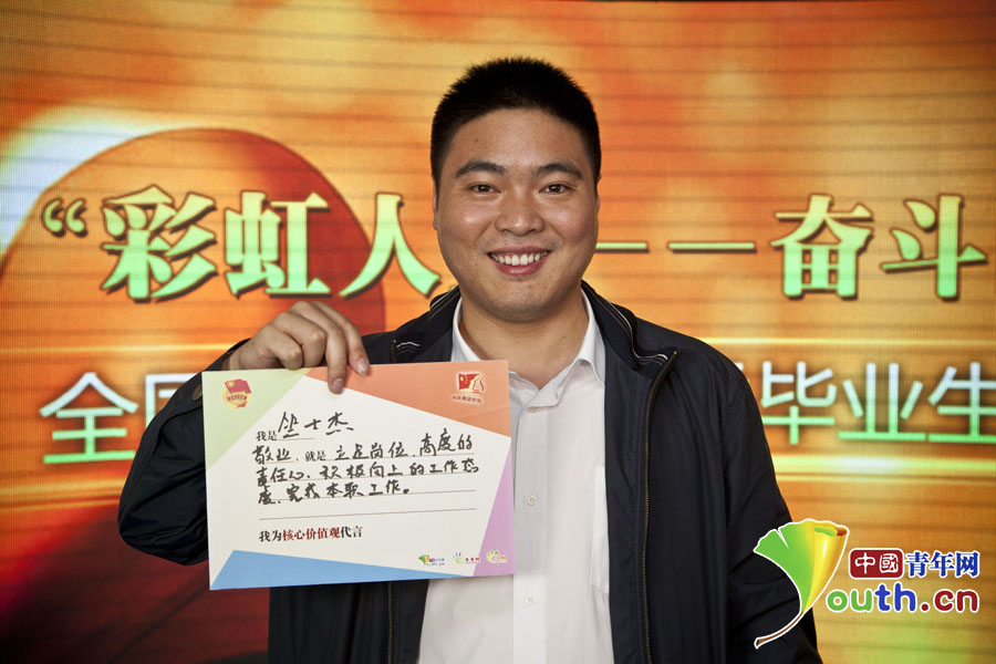 北京市求实职业学校教师胡超越写下自己的“价值观体”。