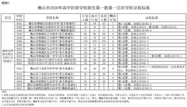 经研究,2020年佛山市高中阶段学校招生第一批最低录取控制分数线及学校录取标准如下: