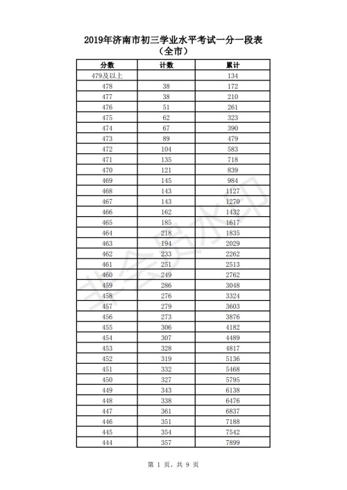 2019年济南市中考成绩一分一段表