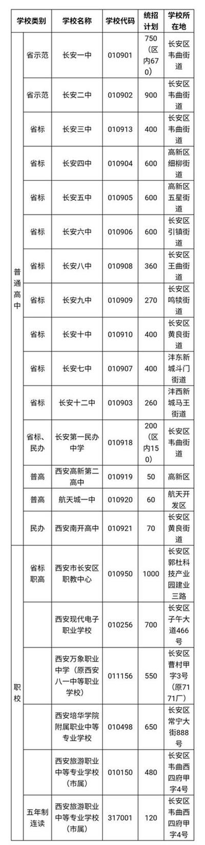 长安区各校招生计划