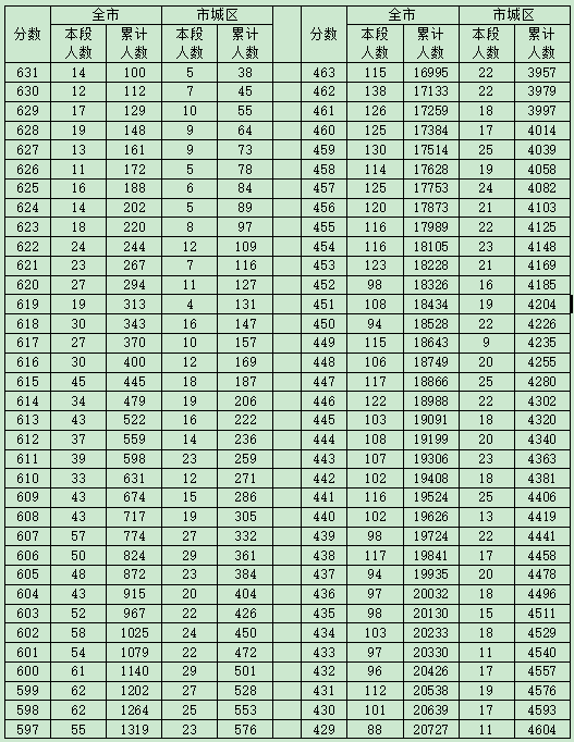 2021年市城区初中学业水平考试“一分一段”表(含北海经济开发区)