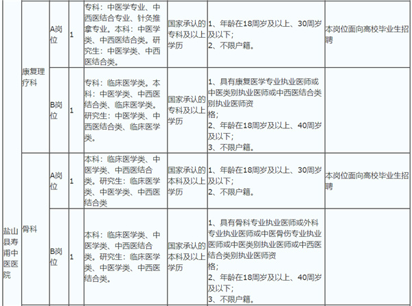 招聘岗位所需的具体条件详见《2021年盐山县寿甫中医医院公开招聘事业单位工作人员岗位信息表》(附件1)。留学回国人员和其他海外、外国学历学位获得者的专业名称与招聘岗位要求专业名称不完全一致,但所学专业课程与招聘岗位专业课程大部分相同,且符合该岗位所需要的其他条件的,也可报考该招聘岗位。